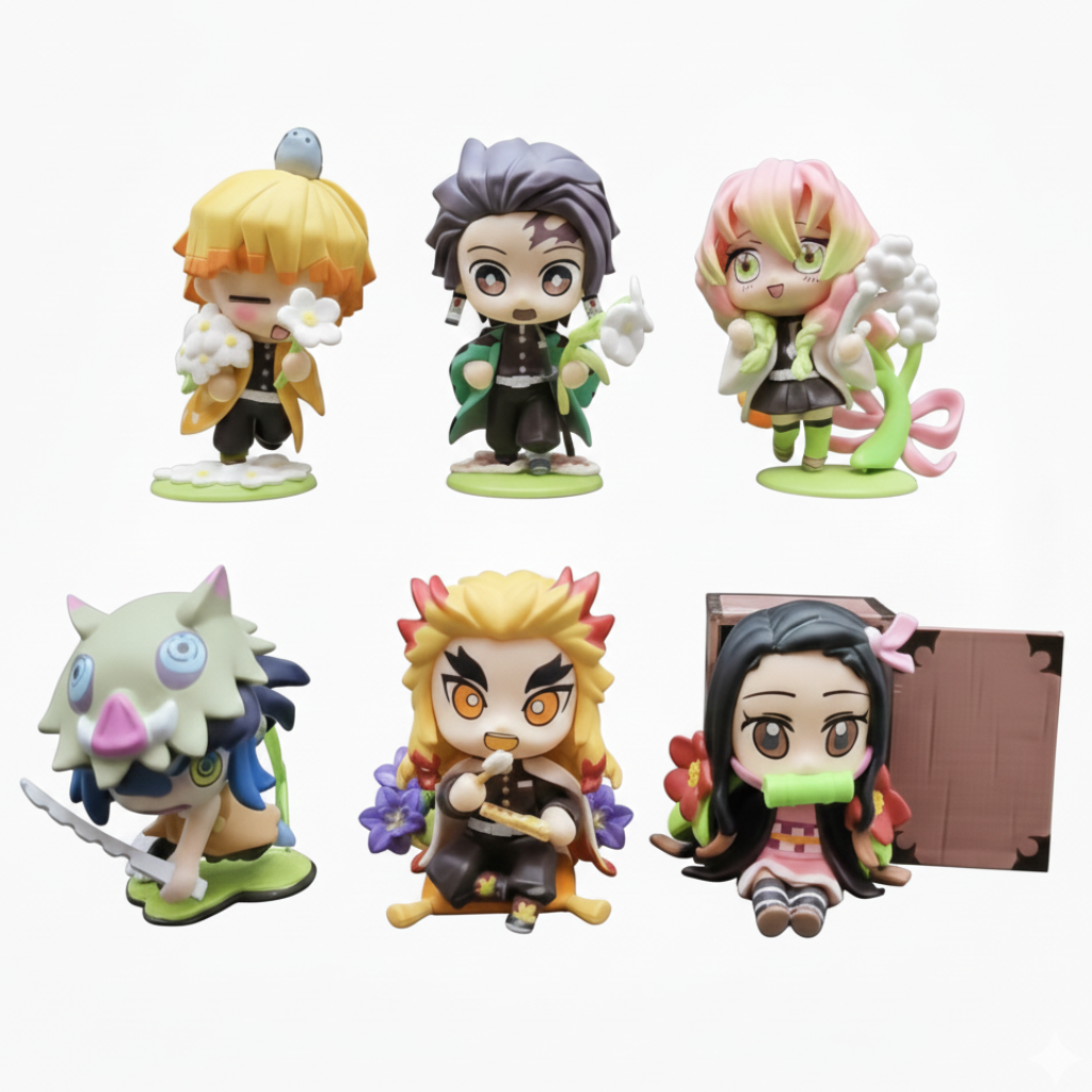 Mini Figures de Demon Slayer com aproximadamente 9 cm. Personagens icônicos em estilo chibi detalhado — perfeitos para decorar, colecionar ou presentear.