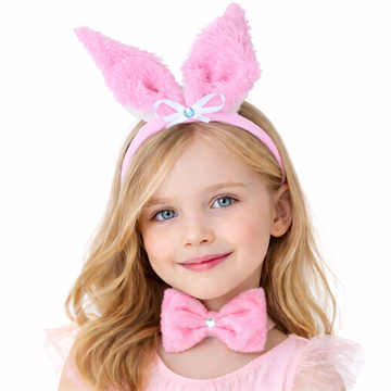 Olá! O kit compõe arquinho e gravata em pelúcia cor rosa, a orelhinha é produzida por tecido de pelúcia somente na frente.
